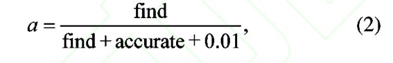 其中r為召回率;find為預(yù)校對(duì)文本中查出來(lái)的真正錯(cuò)誤個(gè)數(shù),error為預(yù)校對(duì)文本中實(shí)際錯(cuò)誤的個(gè)數(shù);0.01為平滑系數(shù)。