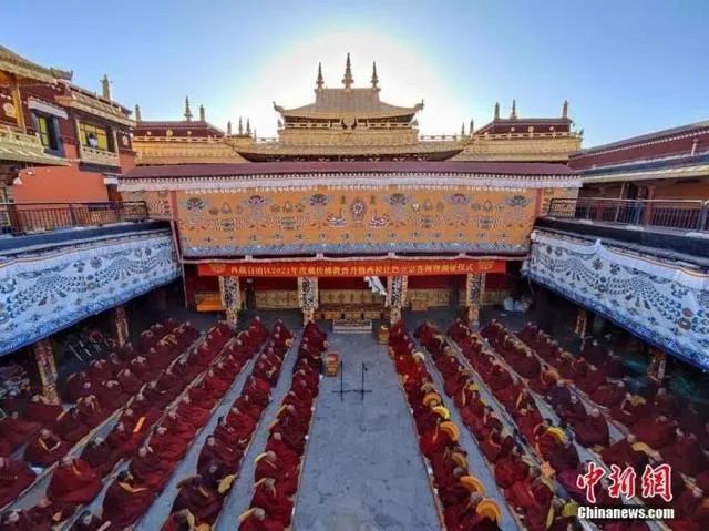 (資料圖:4月5日,西藏自治區(qū)2021年度藏傳佛教學(xué)經(jīng)僧人考核晉升格西拉讓巴學(xué)位立宗答辯暨頒證儀式在大昭寺舉行。中新社記者江飛波攝)