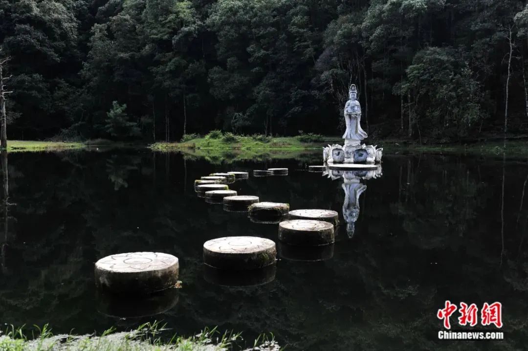 (立于云南大理原始森林深處的白玉觀音像。中新社記者任東攝)