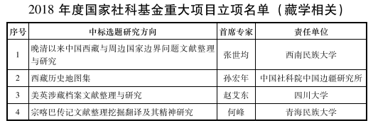 2018年度國家社會(huì)科學(xué)基金重大項(xiàng)目立項(xiàng)342項(xiàng),其中藏學(xué)相關(guān)類立項(xiàng)4項(xiàng)。