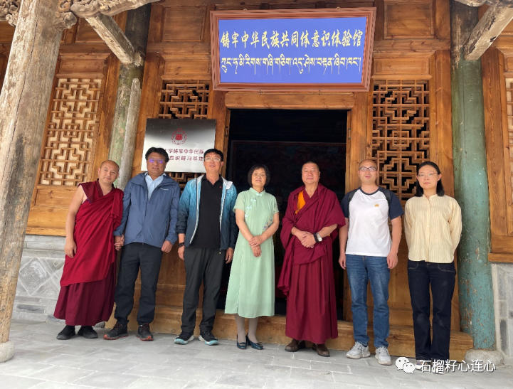 噶爾哇?阿旺桑波活佛、徐黎麗教授一起為研習基地揭牌并與與會代表合影留念。