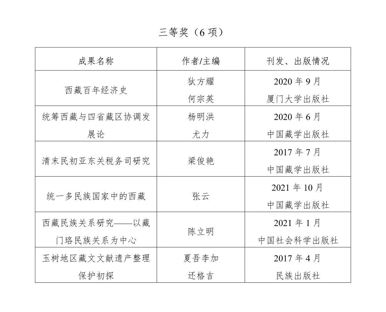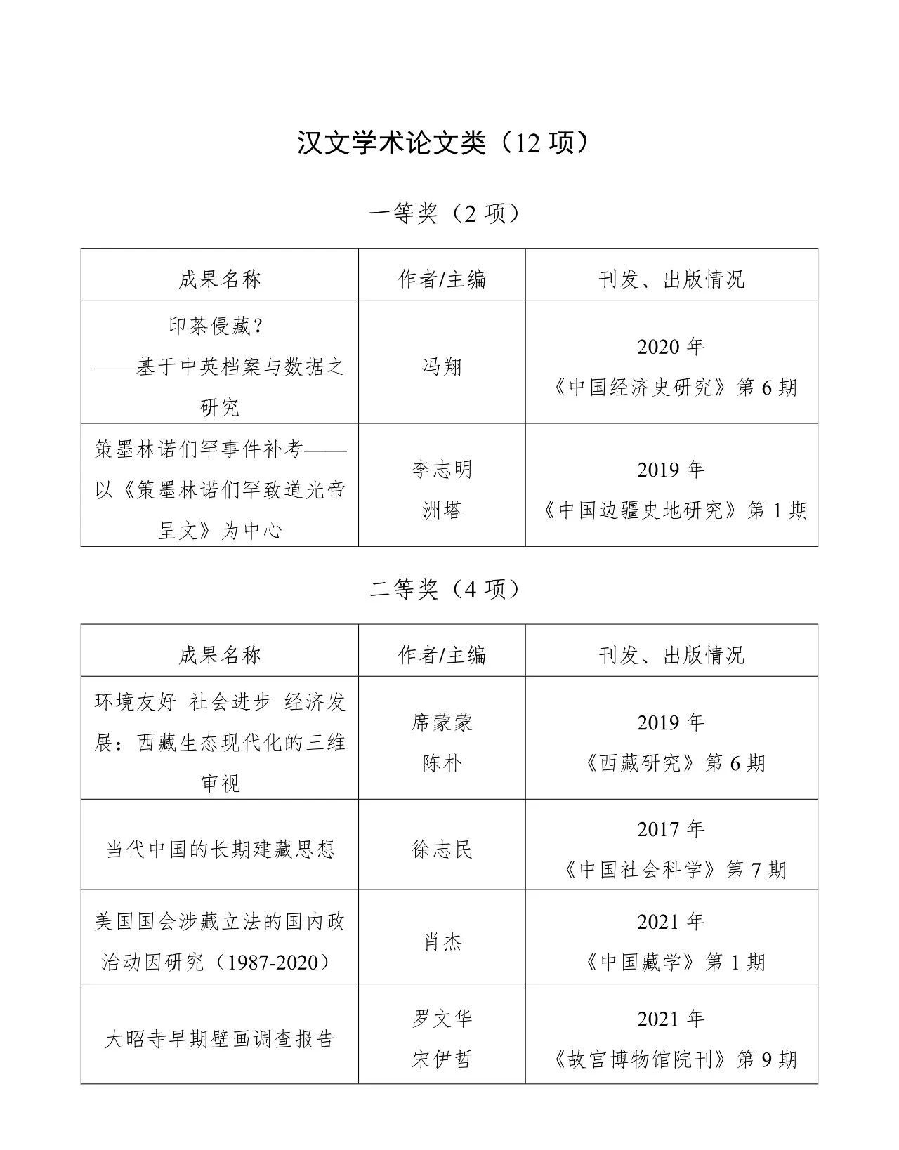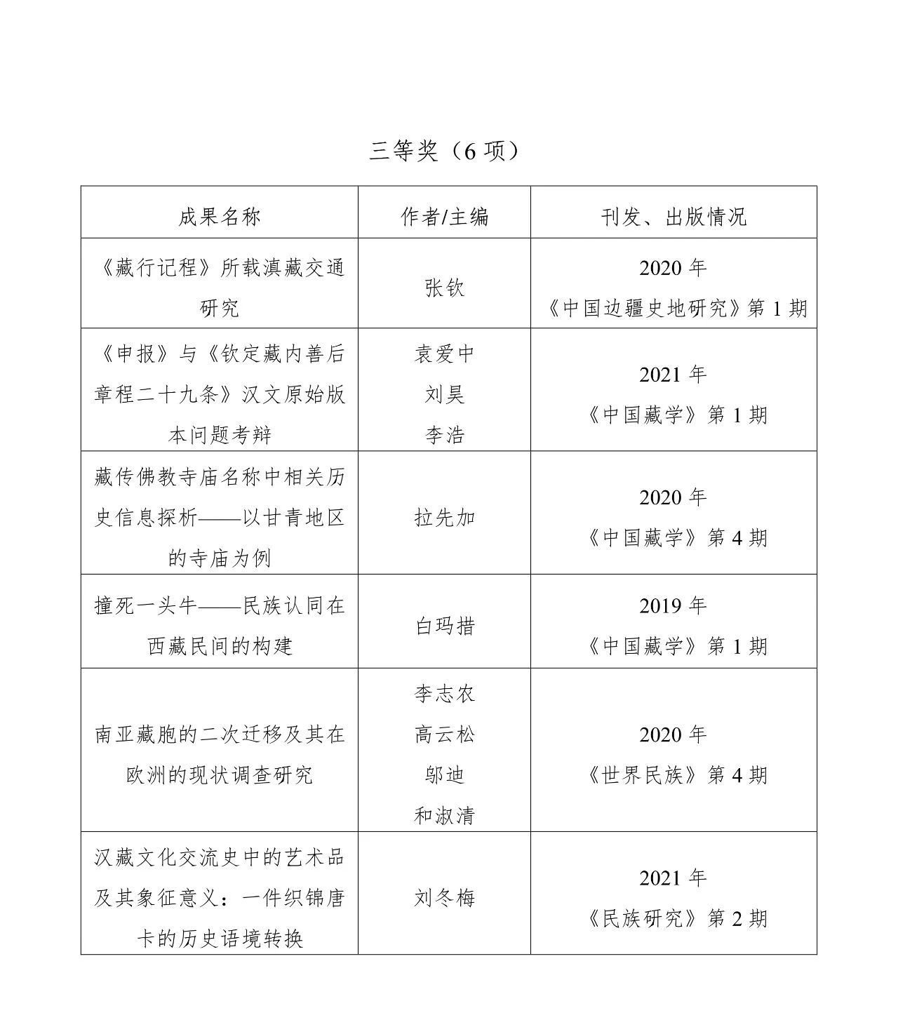 第五屆中國藏學(xué)研究珠峰獎獲獎名單