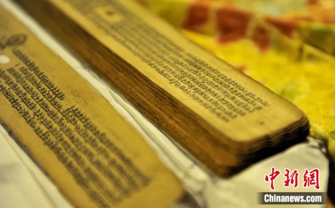 布達拉宮內保存的梵文貝葉經(jīng)。李林攝
