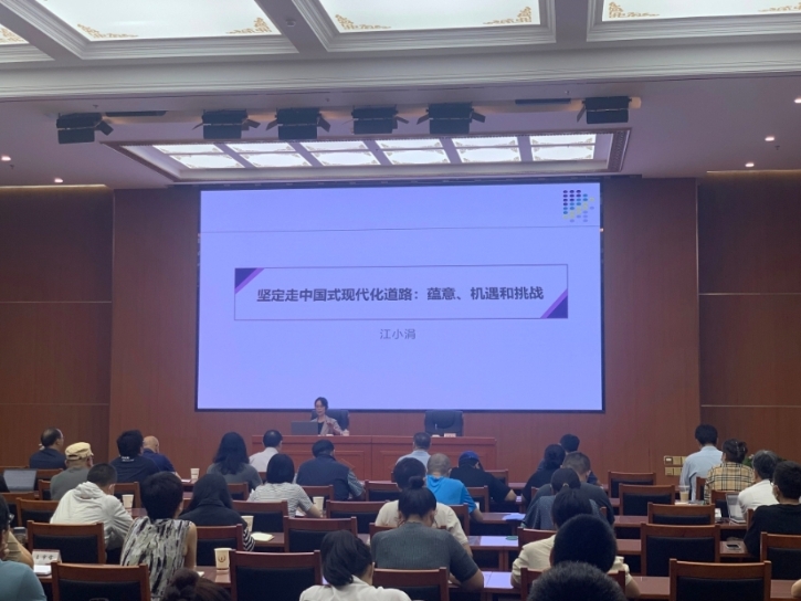 江小涓從國(guó)情、目標(biāo)和跨越挑戰(zhàn)路徑三個(gè)方面著眼,系統(tǒng)梳理了人口規(guī)模巨大、全體人民共同富裕、物質(zhì)文明和精神文明相協(xié)調(diào)、人與自然和諧共生、走和平發(fā)展道路的中國(guó)式現(xiàn)代化分別“是什么”、“要什么”和“怎么做”。她指出,一定程度上,中國(guó)式現(xiàn)代化就是要從中國(guó)國(guó)情和發(fā)展目標(biāo)出發(fā),借鑒國(guó)際經(jīng)驗(yàn),破解從全面小康社會(huì)向現(xiàn)代化國(guó)家前進(jìn)中可能碰到的問(wèn)題,跨越可能碰到的挑戰(zhàn),發(fā)揮好我們獨(dú)特優(yōu)勢(shì),順利實(shí)現(xiàn)建設(shè)社會(huì)主義現(xiàn)代化國(guó)家的目標(biāo)。