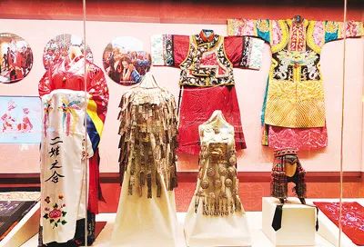 展覽展出的中國少數(shù)民族婚禮服飾。