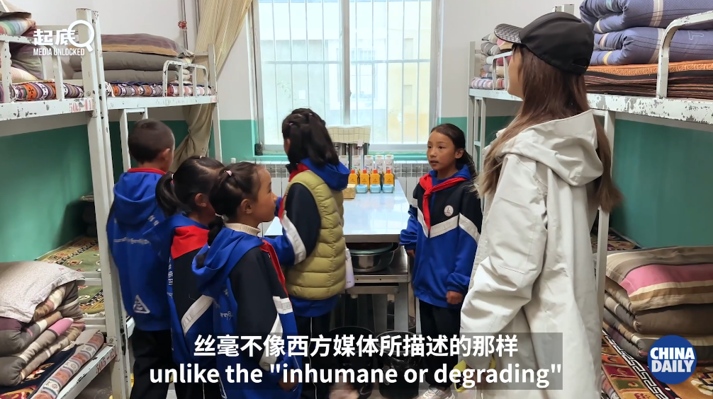 針對西方媒體的“強制同化”論調(diào),她表示不解:“我們這邊農(nóng)民要種田,牧民要放牧,要有工作,(對于)他們的子女,國家說,你別花錢,你放心,你把孩子交給我,我吃、穿、教育,我全部都給你包圓了。我實在是無法理解這個東西為什么能成為一個被攻擊的對象。我覺得非常奇怪,歐洲為什么精英教育恰恰搞的是寄宿制教育呢?現(xiàn)在我們更廣大的學生,能享受到優(yōu)質(zhì)教育的時候,為什么又這樣說,這不是典型的雙標嗎?”
