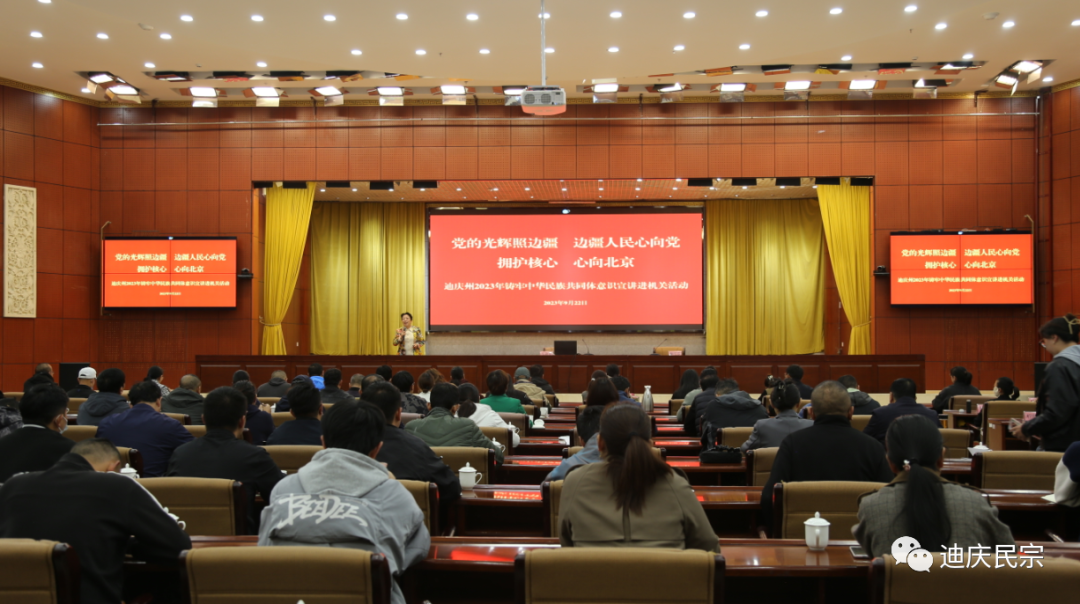 ▲9月22日上午,“黨的光輝照邊疆邊疆人民心向黨擁護(hù)核心心向北京”迪慶州2023年鑄牢中華民族共同體意識(shí)宣講進(jìn)機(jī)關(guān)活動(dòng)在州委報(bào)告廳舉行