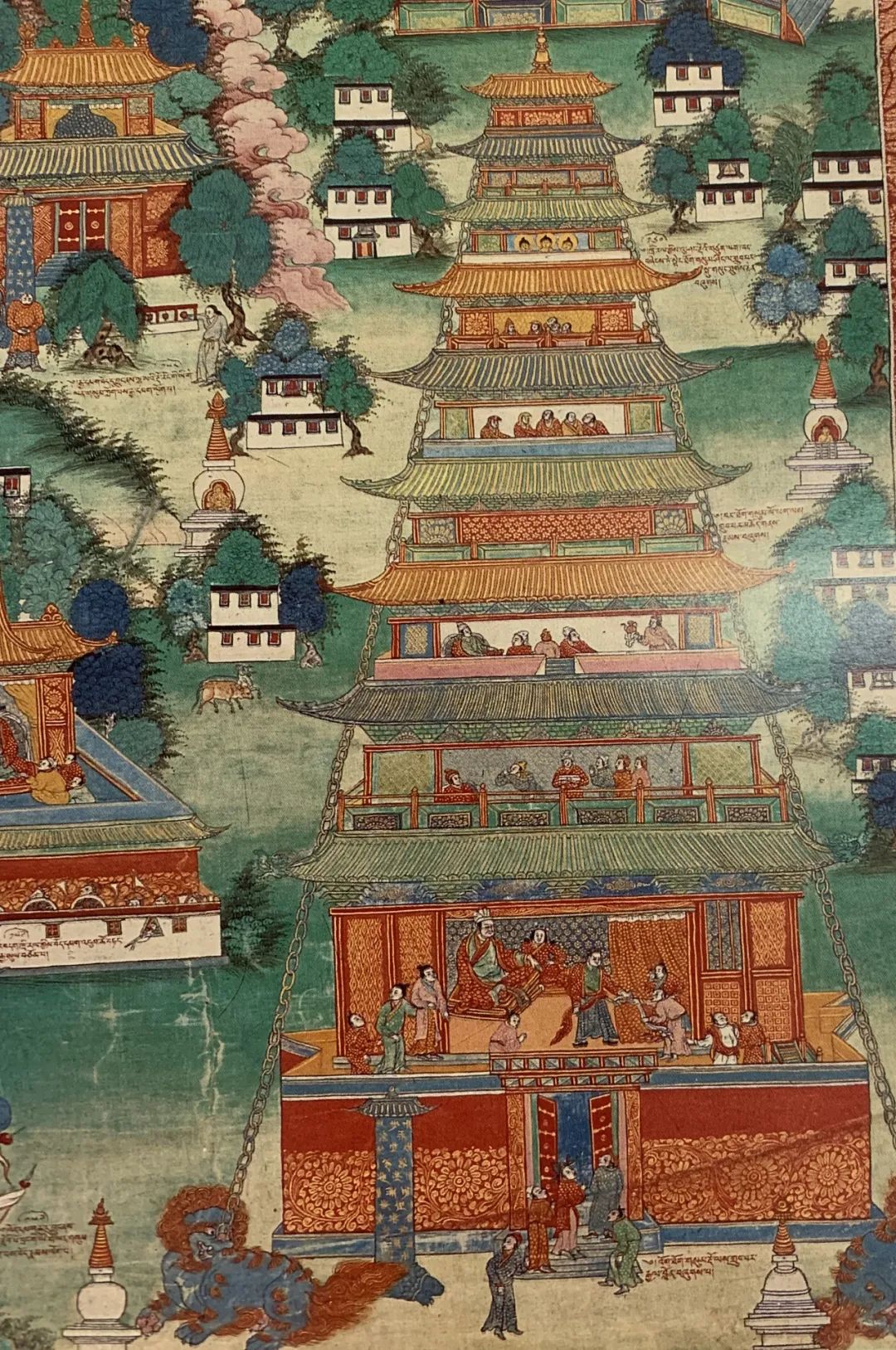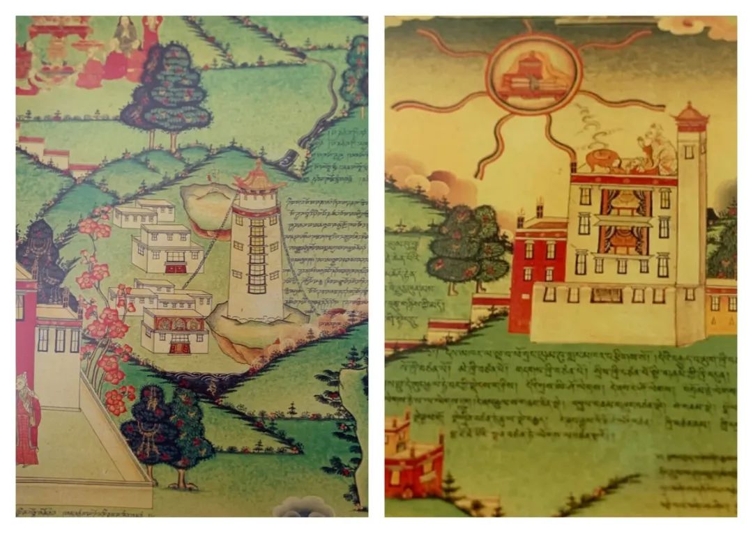 唐卡中的溫江多九層神殿采自《西藏唐卡》、噶瓊寺內亦有此唐卡