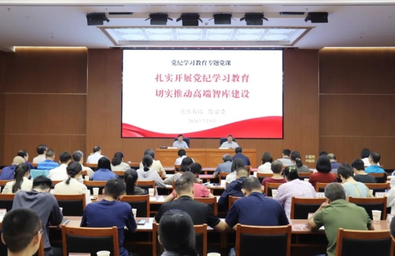 7月5日,藏研中心黨組書記陳宗榮以“扎實開展黨紀學習教育,切實推動高端智庫建設”為題,為全體黨員干部講黨紀學習教育專題黨課。黨課由黨組成員、副總干事李德成主持,黨組副書記、總干事鄭堆,黨組成員、副總干事劉威、扎洛及中心各級黨組織150余名黨員干部參加。
