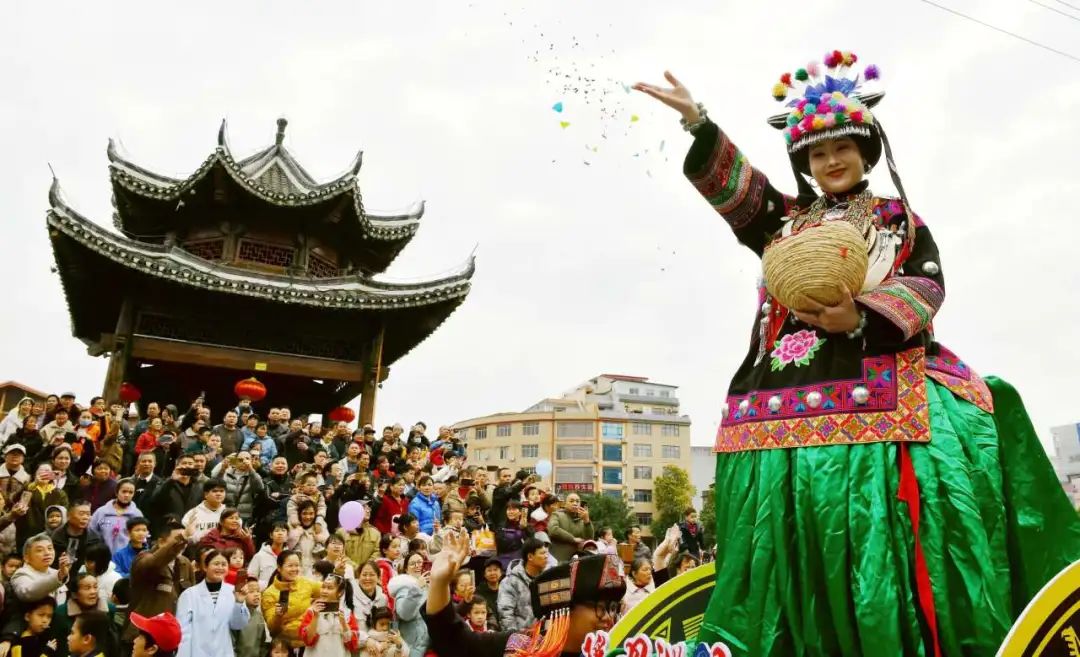 ▲3月31日,在廣西都安瑤族自治縣舉辦的“三月三”活動中,演員表演“瑤母巡山”。新華社發(fā)(高東風攝)