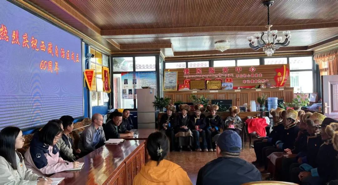近日,在西藏自治區山南市扎囊縣吉汝鄉羅布村進行田野調研的中國藏學研究中心課題組與扎囊縣委統戰部、吉汝鄉黨委、羅布村兩委相關黨員干部聯合舉辦黨日活動,共同慶祝西藏自治區成立60周年。