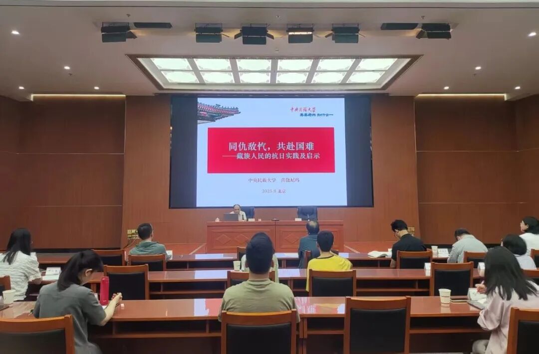 近日,藏研中心舉辦第60期“藏研講壇”,邀請中央民族大學二級教授、博士生導師喜饒尼瑪作題為《同仇敵愾、共赴國難——藏族人民的抗日實踐及啟示》的專題講座。藏研中心副總干事扎洛出席會議,圖書館負責同志主持會議,藏研中心全體干部職工參加。
